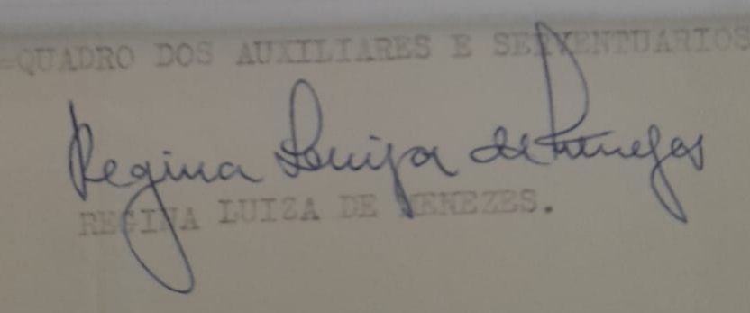 Como se trata de documento histórico, mantenho, isoladamente, a bonita assinatura de D. Regina que, aliás, consta em inúmeros documentos públicos expedidos pela comarca de Chorrochó no tempo em que ela foi titular do Cartório de Registro Civil.