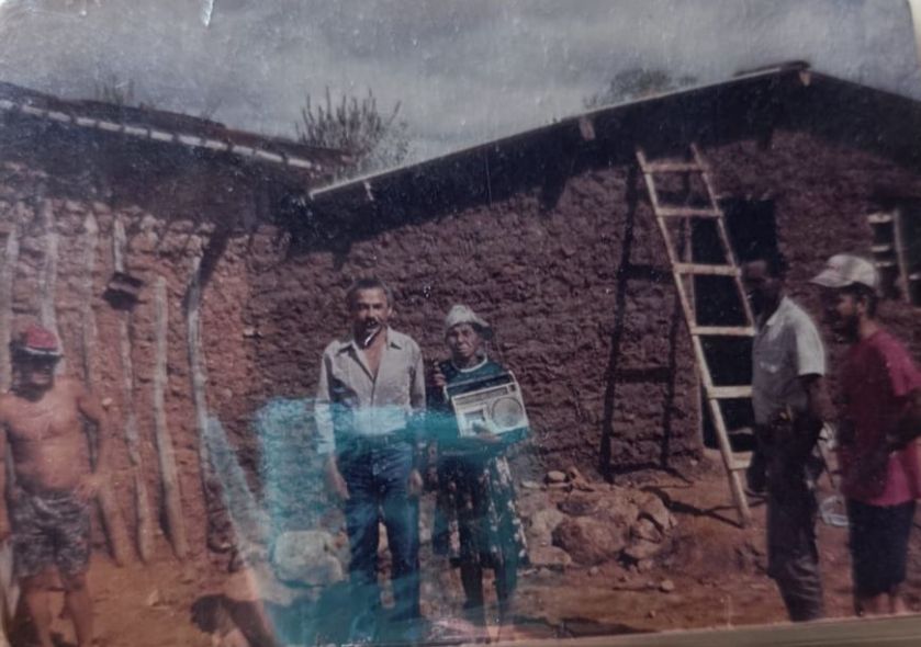 Veem-se meu irmão José Araújo Costa (Zé de Sátira), minha mãe Sátira Araújo Costa com um rádio e alguns generosos amigos nossos.